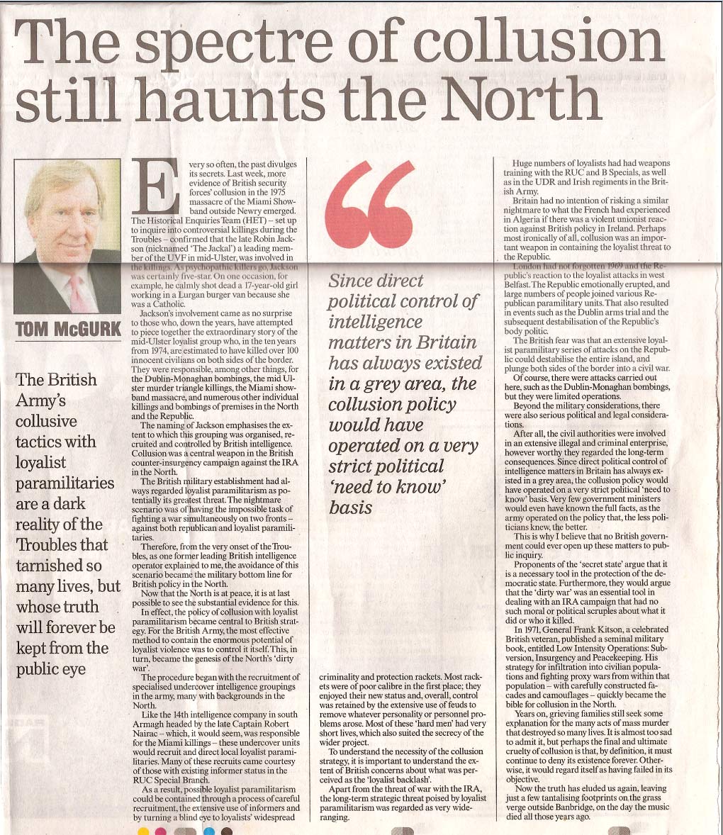 The spectre of collusion still haunts the North, so writes Tom McGurk of The Sunday Business Post.