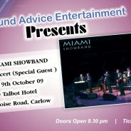The Dunamaise Arts Centre Portlaoise Friday October 30th at 8.00 p.m. www.themiamishowband.com in association with The Cuisle Centre Cancer Support Group. In aid of The Cuisle Centre Cancer Support Group. proudly presents The Miami Showband “The last of the great original Irish Showbands” with special guest From D-Side Acclaimed Singer/Songwriter Derek Ryan (Formerly known as Ryan O’Rian) Book on-line at www.dunamaise.ie Box Office: 057 866...